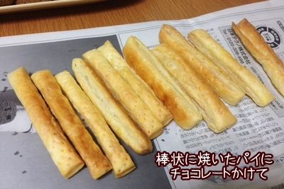 冷凍パイ生地を棒状に切って焼いたのに